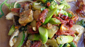 : chicken, asparagus, sun dried tomatoe