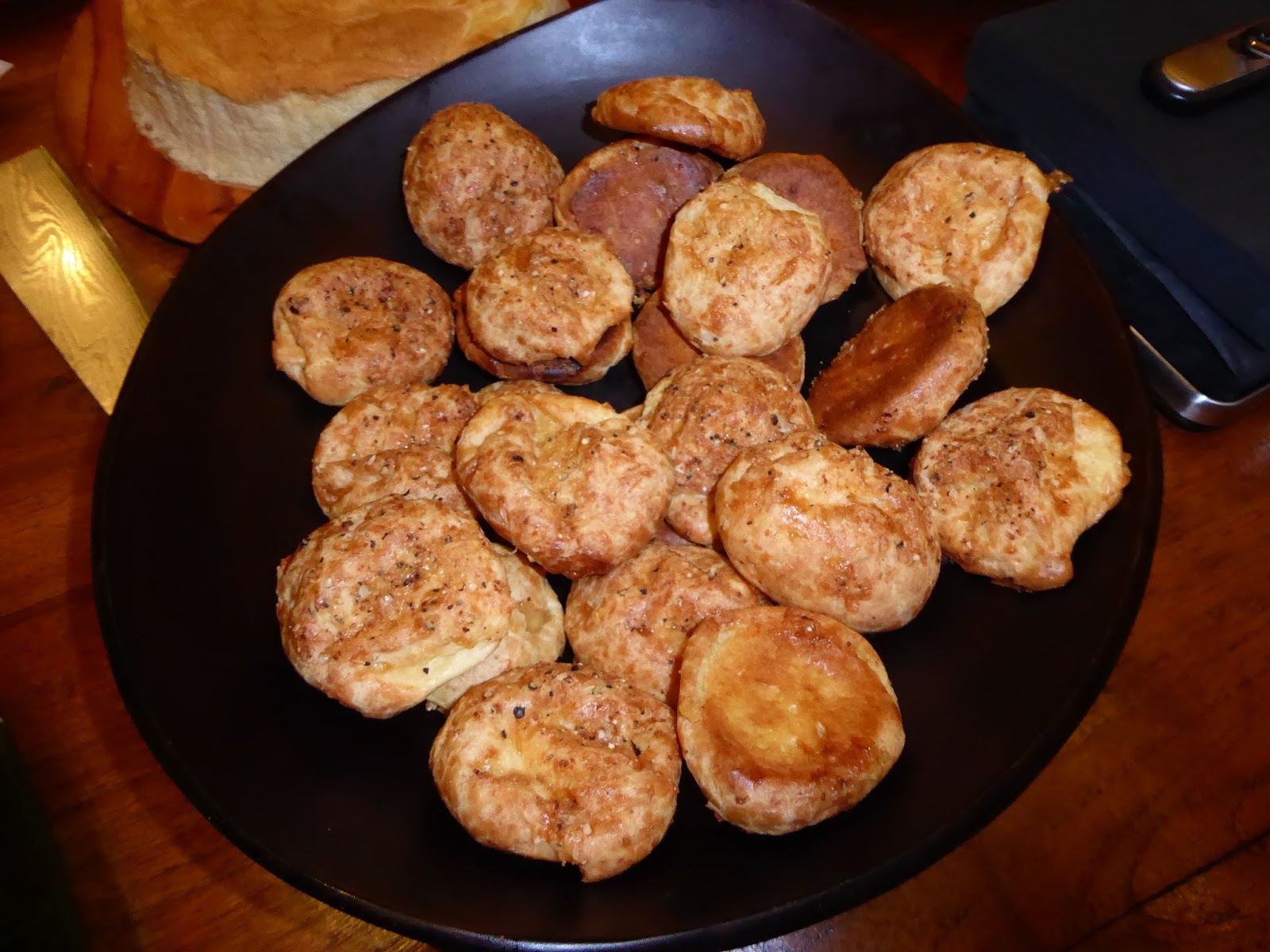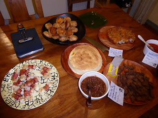 grilled mochi with bacon, souffle cheese cake, fried pork chops, cheese gougeres, tomato chutney